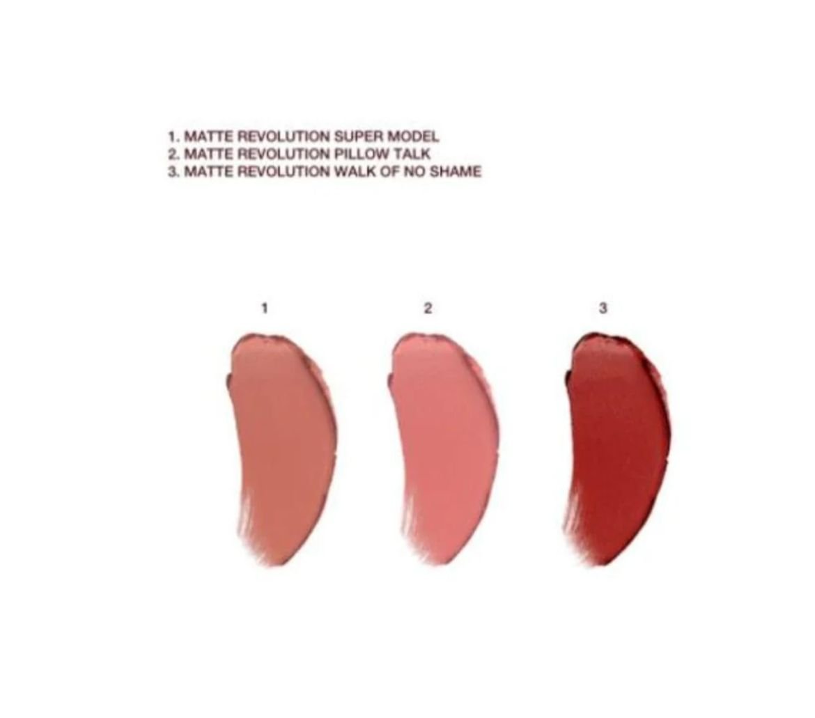 • Mini Matte Revolution lipstick in Walk of No Shame: The globally-loved, berry-rose, lip-enhancing hue that’s loved by supermodels and stars with a confidence-enhancing, cashmere-soft matte finish.